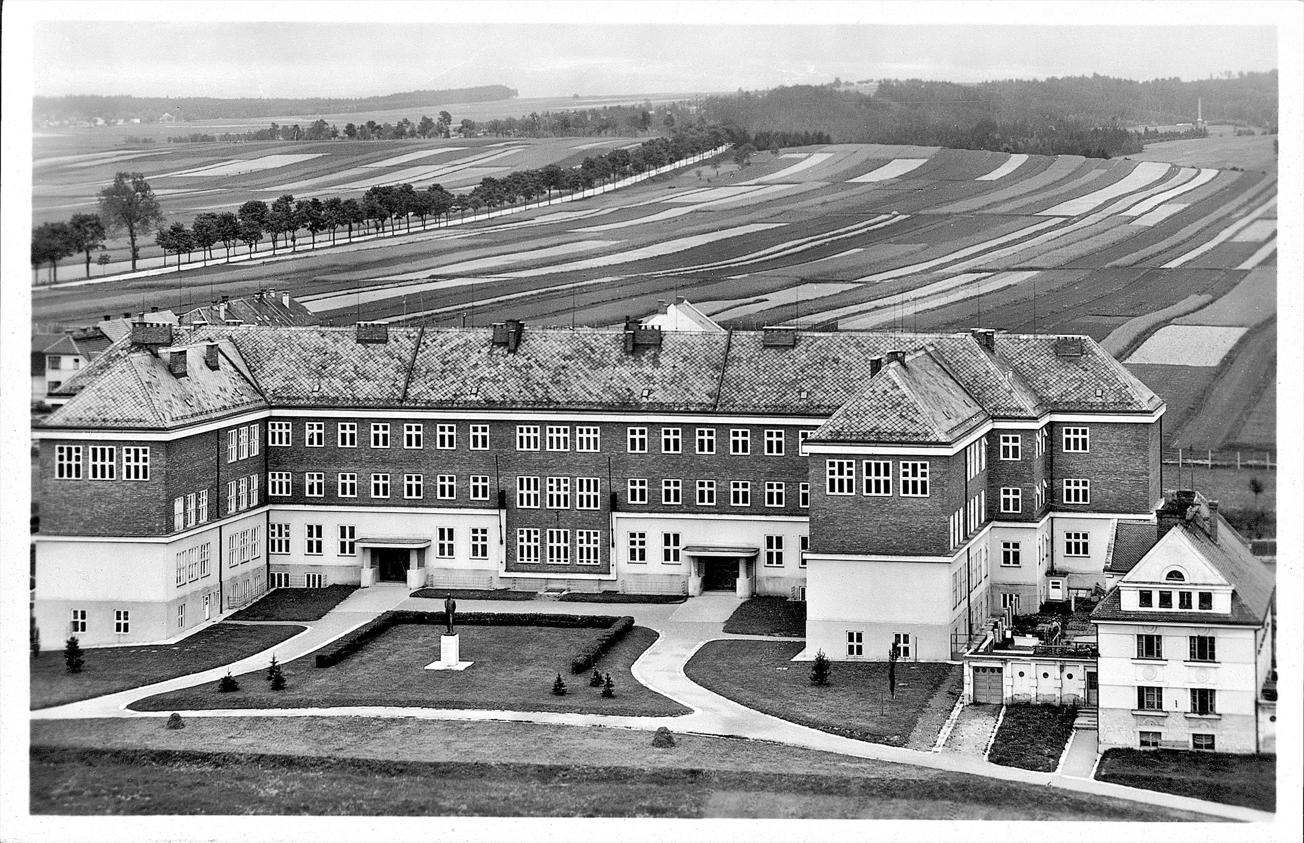 Socha T. G. Masaryka z r. 1931 (Josef Fojtík) byla bronzová a za okupace došlo k jejímu odstranění a roztavení. Od r. 1996 je zde pískovcová socha od Michala Moravce.