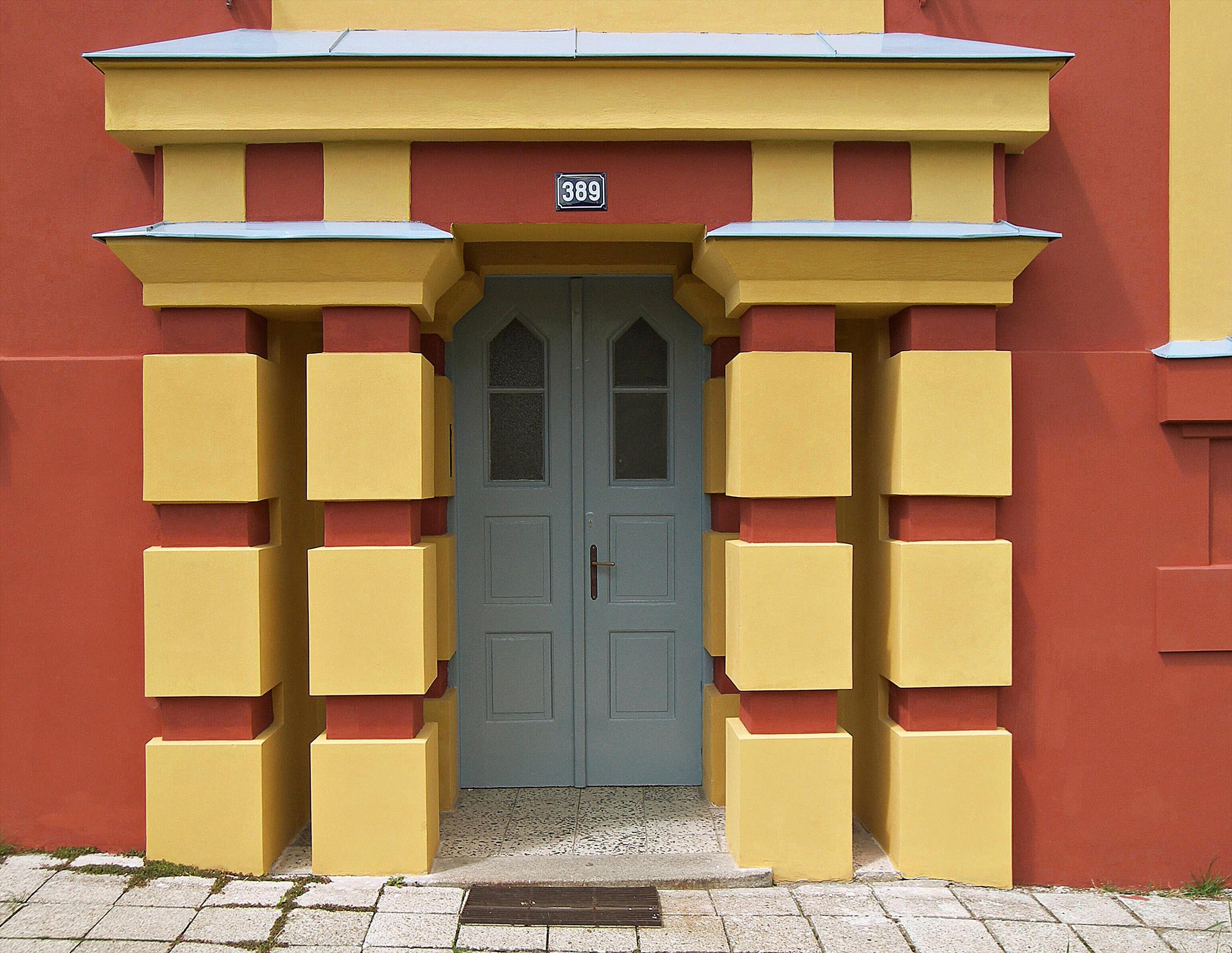 If you go to E. Beneš Street behind the schools, you will see other interesting Rondo-Cubist houses with unique portals. The corner house No. 389 has original colors restored. And you should not miss the functionalist Šmíd Villa (1934).
