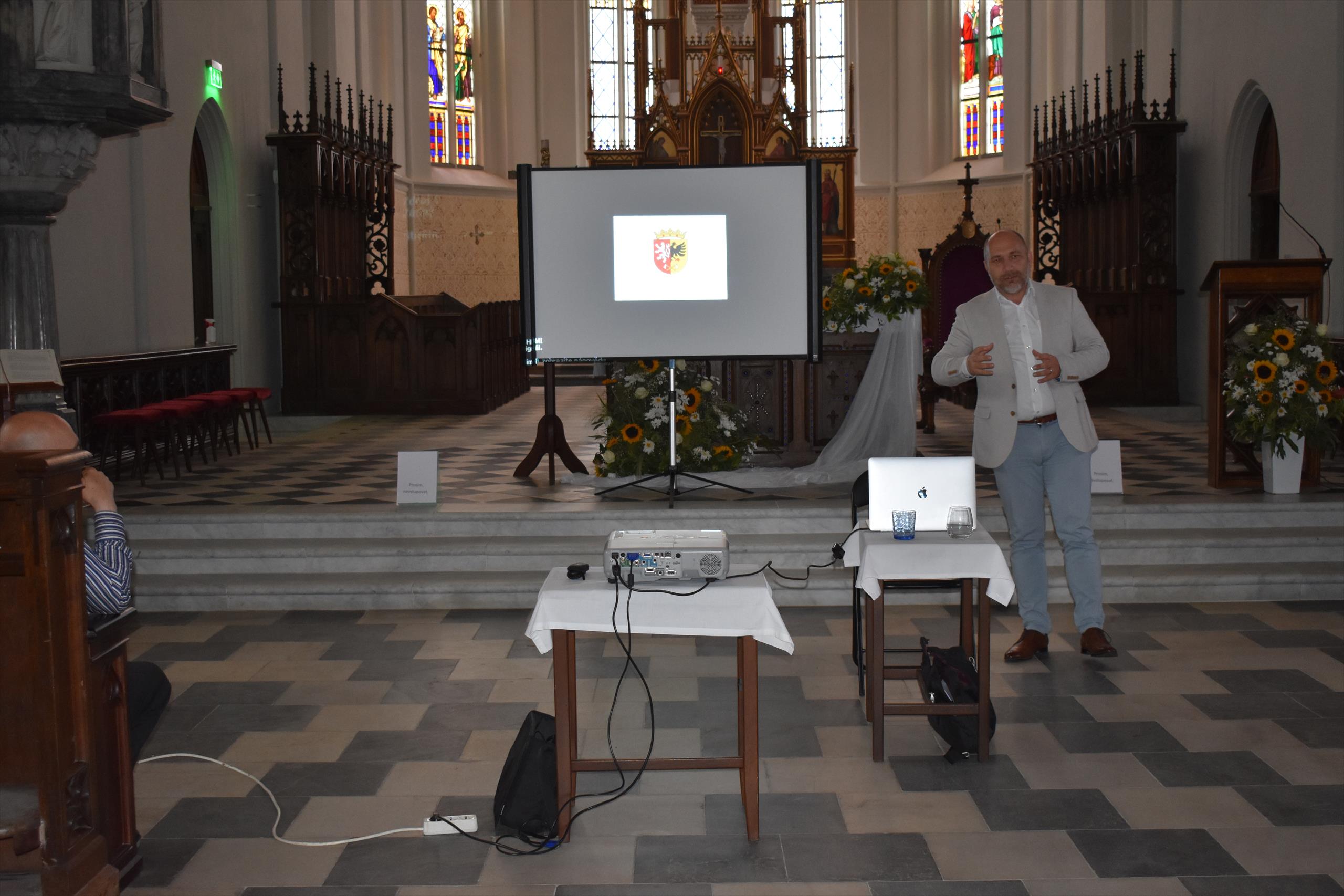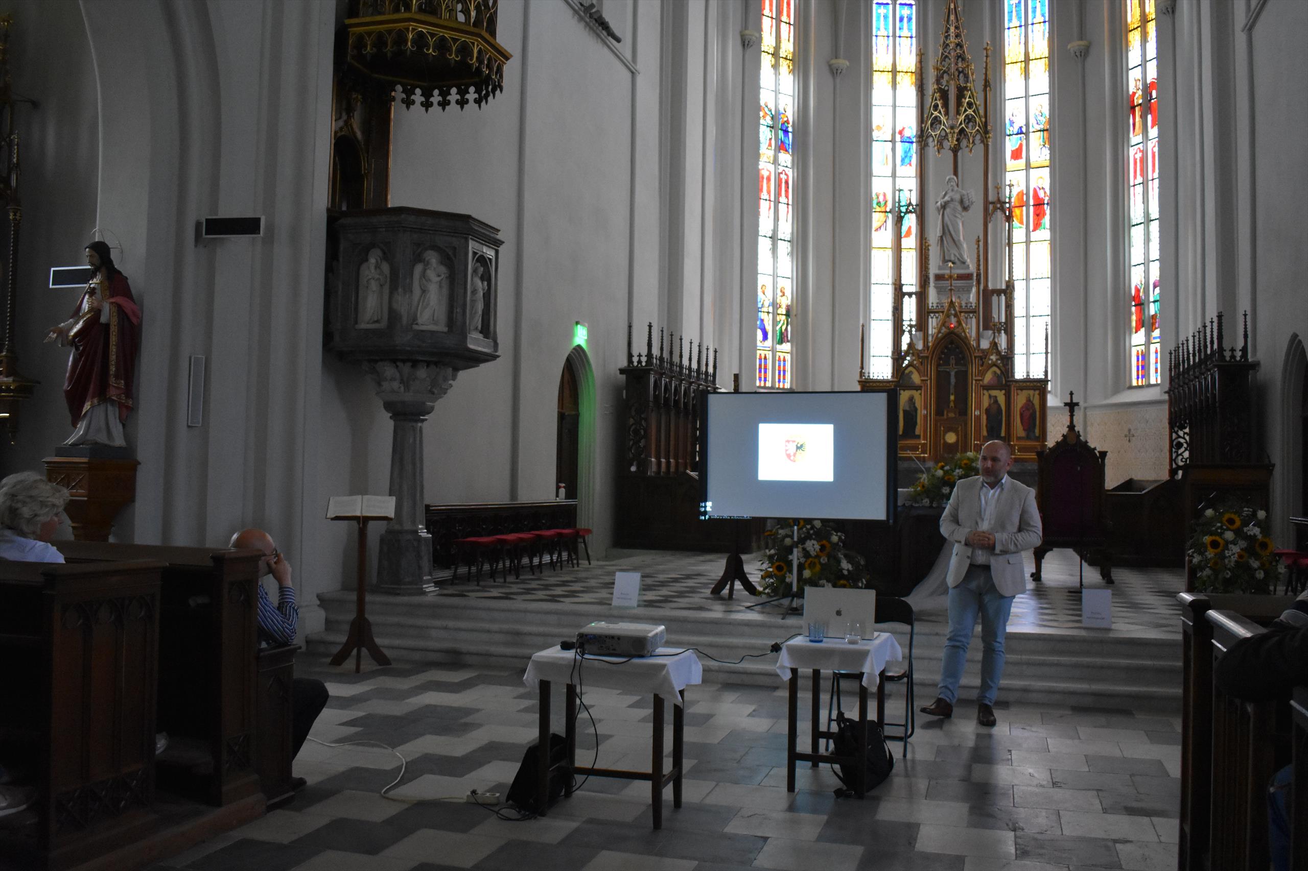 Studii představil veřejnosti MgA. Přemysl Kokeš na besedě, kterou uspořádalo město Polička ve středu 21. července. Pan architekt nejprve přítomným v interiéru kostela sv. Jakuba promítnul a okomentoval celý projekt a poté pokračoval výklad a také zodpovězení řady dotazů přímo v terénu.