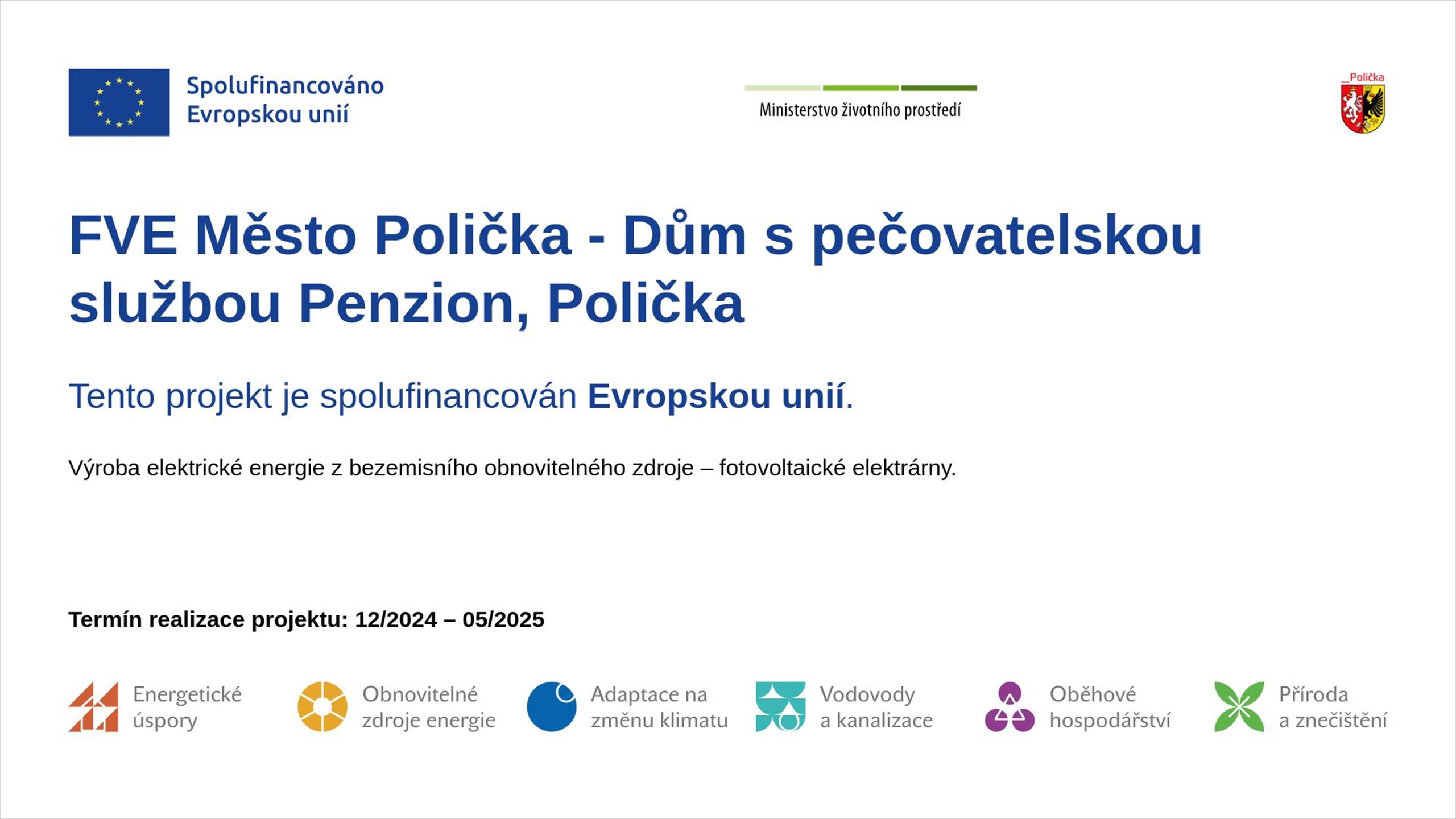 Fotovoltaické elektrárny jsou umístěny na objektech ve vlastnictví města Poličky - Dům s pečovatelskou službou Penzion Polička, ZŠ Na Lukách, MŠ Luční a školní jídelna Rumunská.
