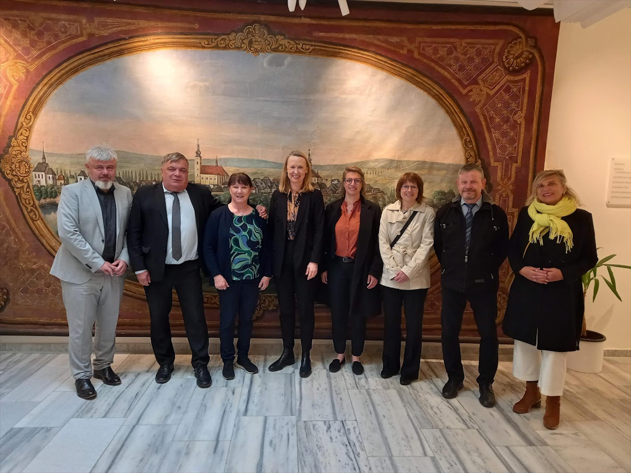 O půl jedenácté v pátek 16. května přijela do Poličky další vzácná návštěva, a to velvyslankyně Rakouska v České republice Bettina Kirnbauer. Jsme velmi rádi, že paní velvyslankyně přijala pozvání k návštěvě Poličky od starosty Jaroslava Martinů a přijela. Páteční počasí sice nepřálo, déšť a velká zima, přesto naše město zapůsobilo na všechny tři rakouské dámy velmi pozitivně. Návštěva rodné světničky B. Martinů ve věži kostela byla pro všechny nezapomenutelná. Tuto raritu má opravdu pouze město Polička. Výklad ředitelky Pavly Juklové o životě skladatele ve věži, zajímavé střípky ze života rodiny, to vše naše hosty uchvátilo. Dámy se ptaly, zajímaly, obdivovaly… Úžasný pocit pro poličské patrioty. Dalším bodem programu byla poličská radnice a její obnovené prostory. Právě toto téma je pro rakouskou spolupráci stěžejní, galerie rodu Hohenemsů. Zde návštěvu provedl historik David Junek a opět velké nadšení a úspěch. Paní velvyslankyně velmi ocenila, jak město o obrazy pečuje a to, v jakém nádherném prostředí jsou umístěny. Slavnostní oběd za přítomnosti starosty města Jaroslava Martinů a místostarosty Pavla Štefky proběhl ve velkém slavnostním sále právě mezi obrazy rodu Hohenemsů. Kde také jinde než s pohledem na obraz Zahradní hostina Hohenemsů, z roku 1578, který je se svými 54 osobami nejrozsáhlejším skupinovým portrétem mimo italské území. „Mnohokrát děkuji za srdečné přijetí v Poličce. Úzké vztahy s Hohenemsem, i díky Vaší překrásné sbírce obrazů, na nás hluboce zapůsobily. Budeme o tyto vztahy rádi i nadále pečovat,“ napsala do pamětní knihy na radnici paní velvyslankyně Bettina Kirnbauer.