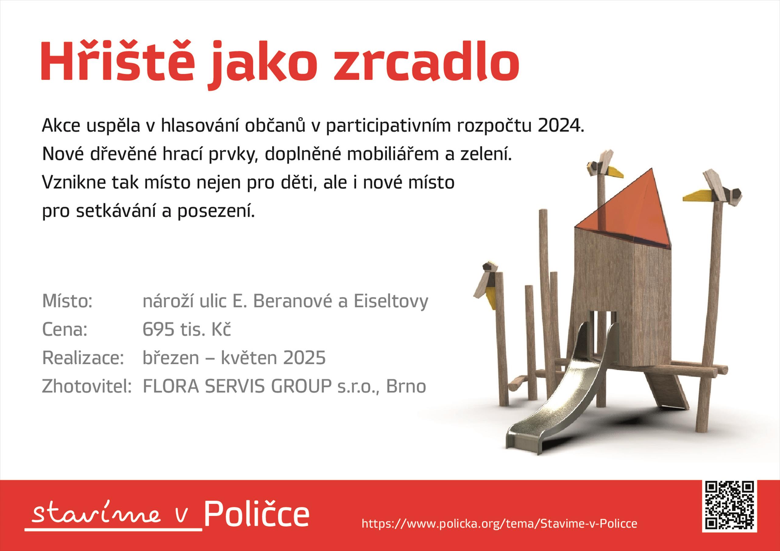 V květnu bylo dokončeno nové dětské hřiště u hřbitova sv. Michaela (na nároží ulic E. Beranové a Eiseltovy). Akce uspěla v hlasování občanů v participativním rozpočtu 2024. Nové hrací prvky, kdy hlavním materiálem je dřevo, nový mobiliář, zeleň.