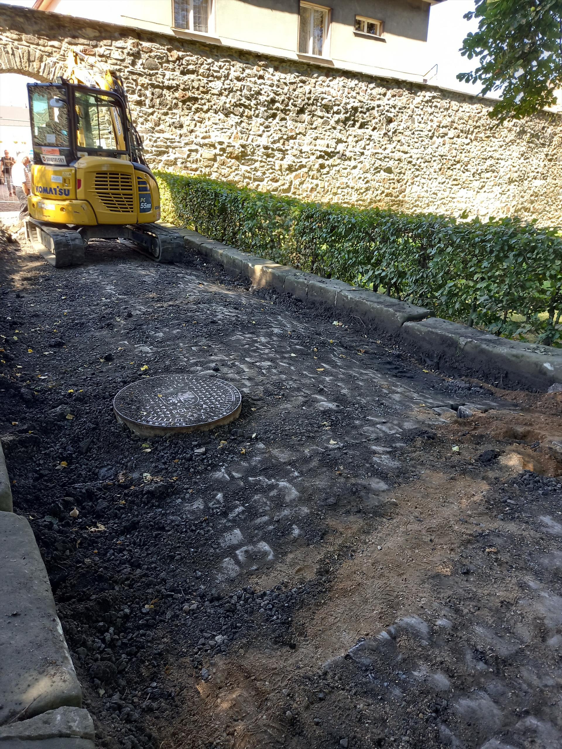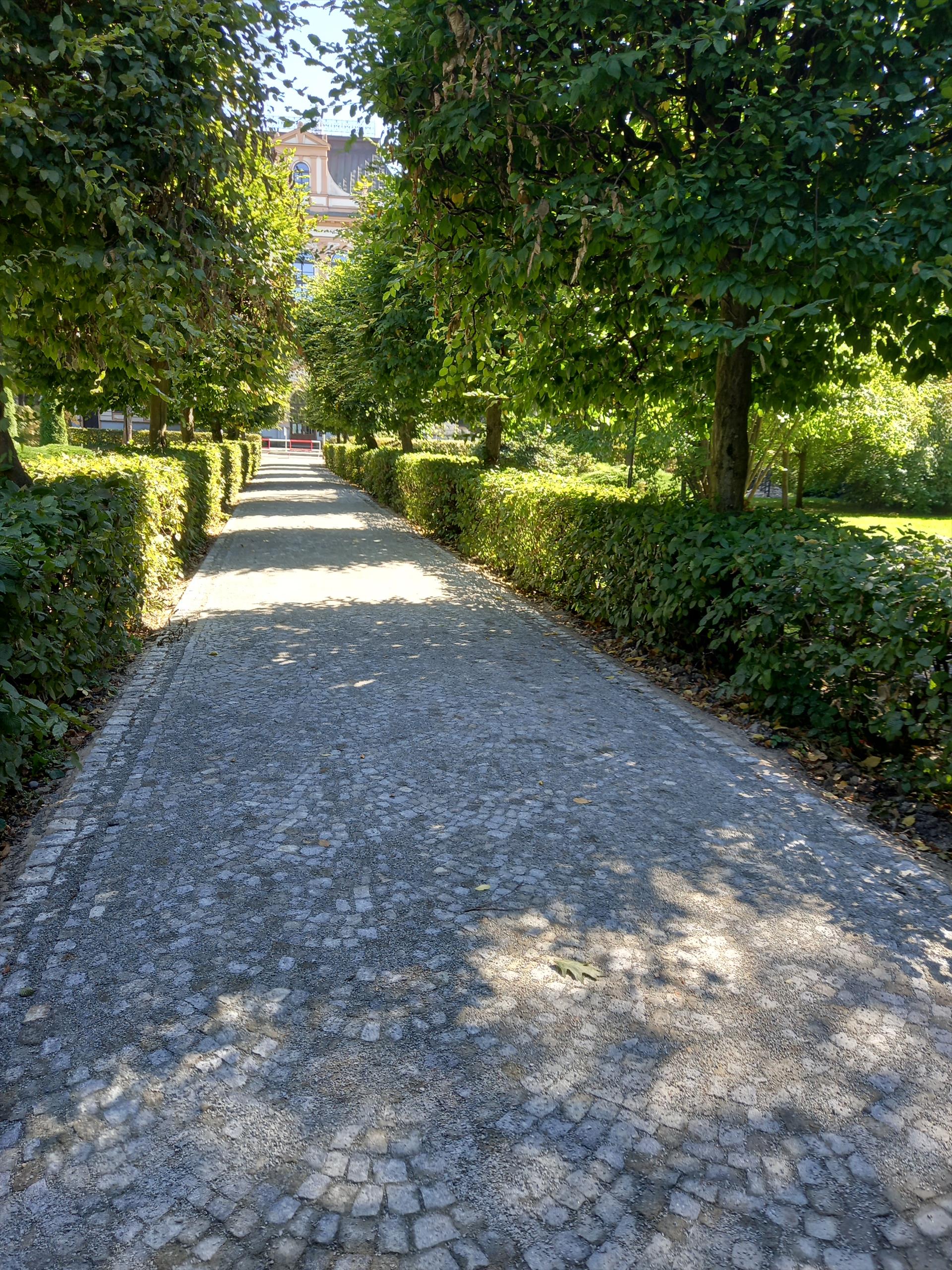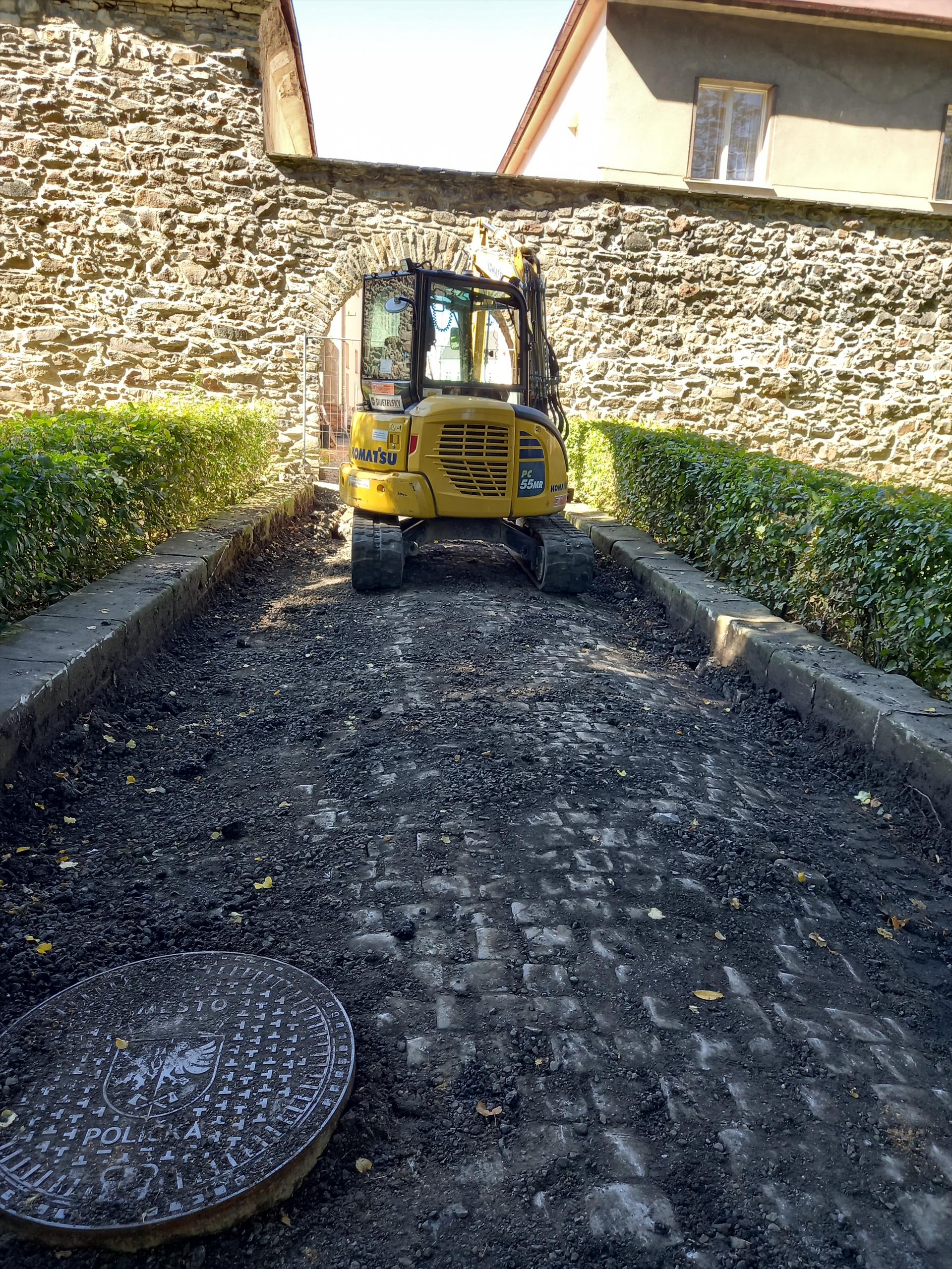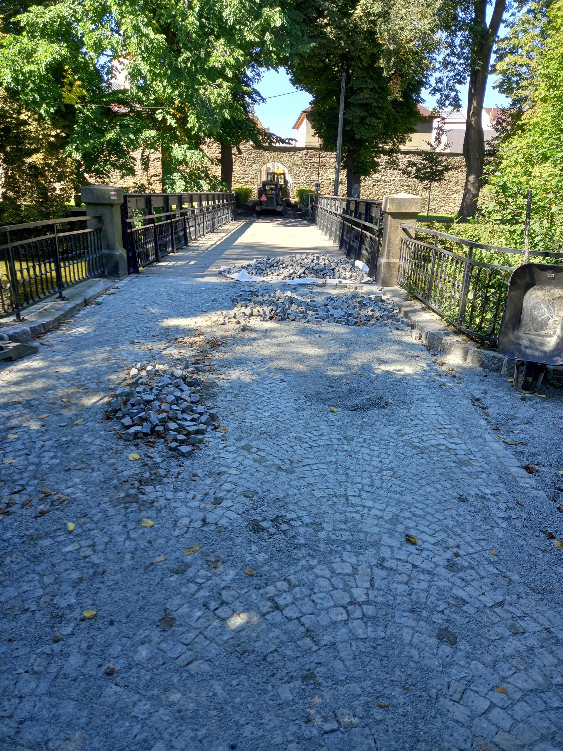 V parku pokračuje rekonstrukce komunikace vedoucí ke gymnáziu. Stávající asfaltový povrch nahradí nová žulová mozaiková dlažba.