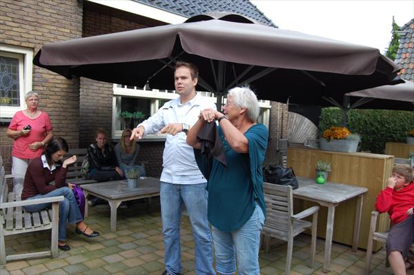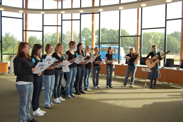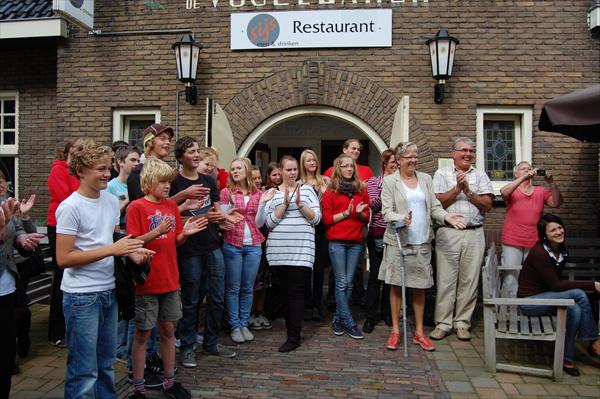 Neděli 11. září jsme strávili v Dwingeloo. Zde probíhal celodenní program a opět se tančilo, zpívalo, kouzlilo a ochutnávaly se české koláče. Překonali jsme veškeré překážky a zvládli veškeré zmatky, baletky nakonec zatančily na betonové podlaze parkoviště a místo slušivých sukní tentokrát ve slušivých kalhotách (sukně byly naloženy v autobuse a odvezeny mimo Dwingeloo) a jak byly úspěšné a jak jim to slušelo! Zpěvačky gymnázia zazpívaly moc krásně a ještě navíc nad plánovaný program a jak je všichni rádi poslouchali a podupávali do rytmu! Kouzelník přidal také navíc pár kouzel, a jak se všichni divili, kam začaroval snubní prstýnek jedné z holandských dobrovolnic, která se kouzla zúčastnila. A naši tanečníci z penzionu zatančili nejen skvěle a profesionálně Českou besedu, ale i country tance a ty vzdor nepříjemnému dešti, který se spustil. Odjet se nám nechtělo, často to tak bývá, že nejlepší zábava je právě v okamžiku, kdy se má skončit. A zábava se rozproudila díky taneční holandské skupině, která byla před dvěma lety v Poličce. Hudba hrála, penzionem vířil rej tanečníku z Čech a Holandska a všem bylo dobře. Byl ale čas se rozloučit.